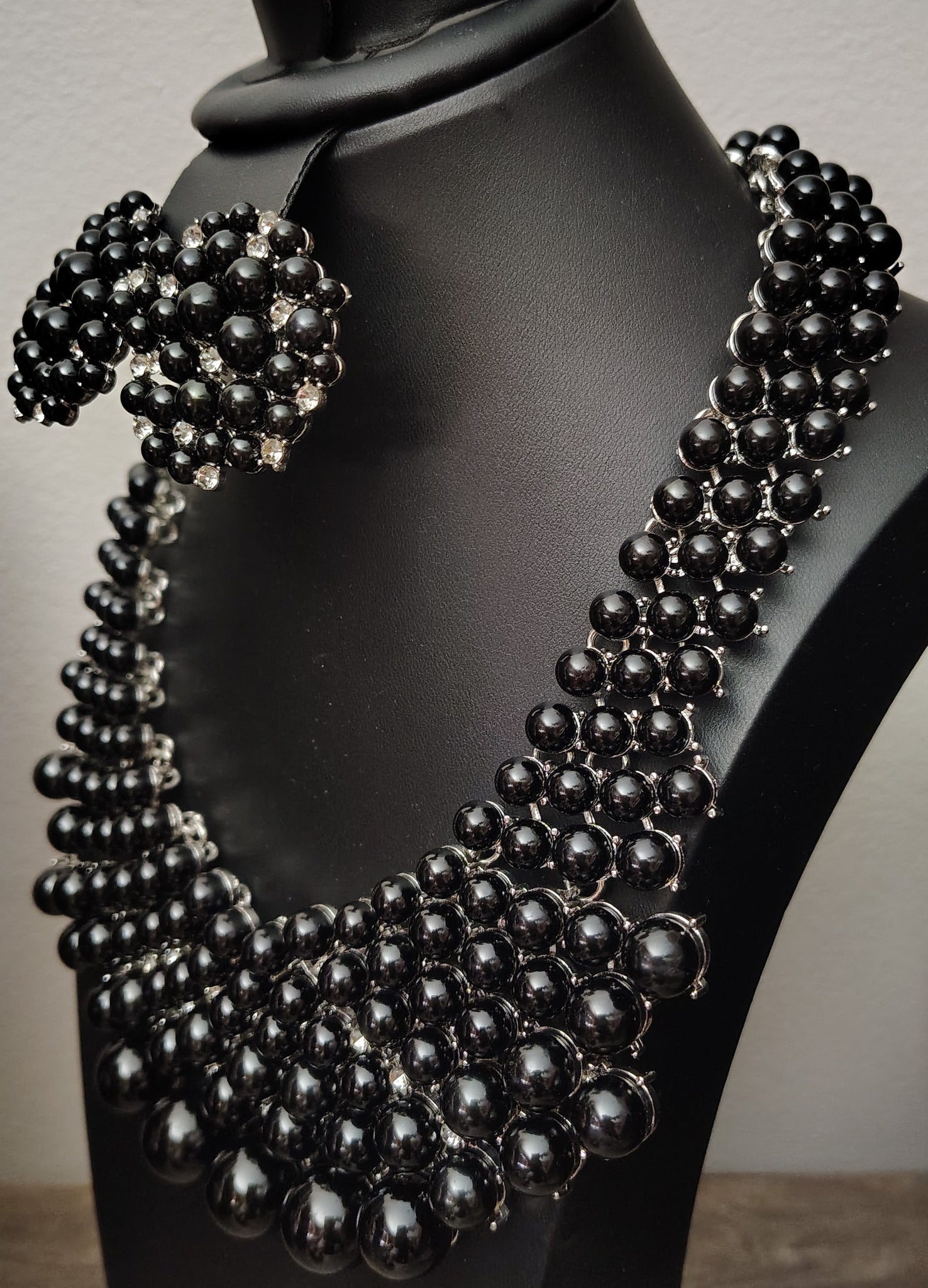 Black Cluster Pearl Necklace Set