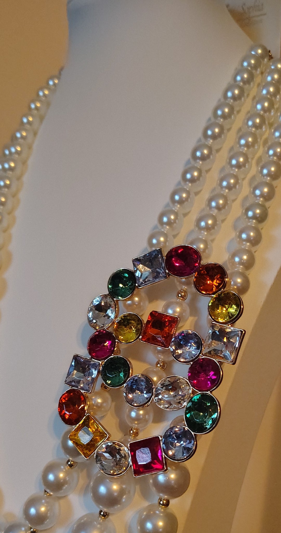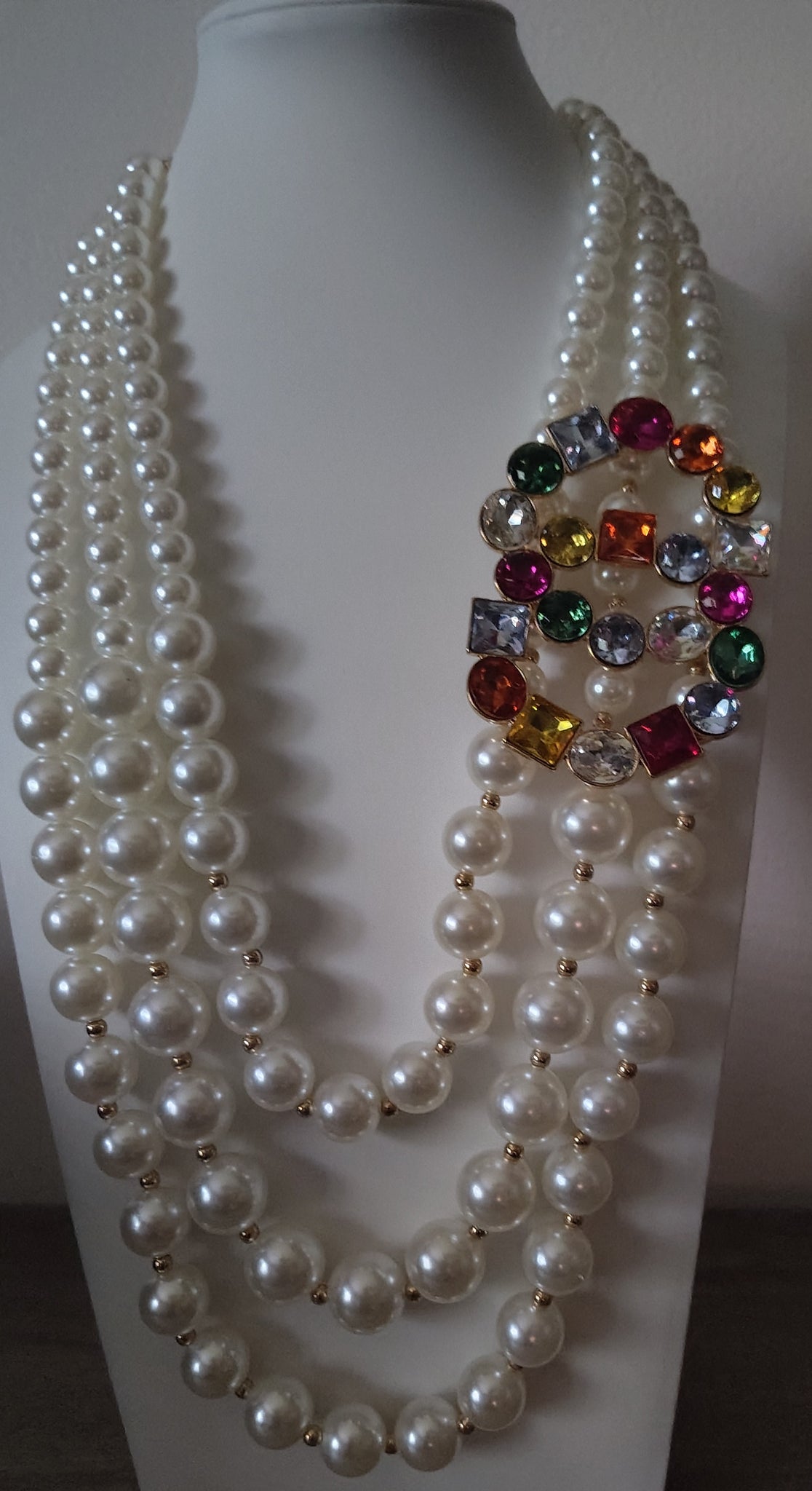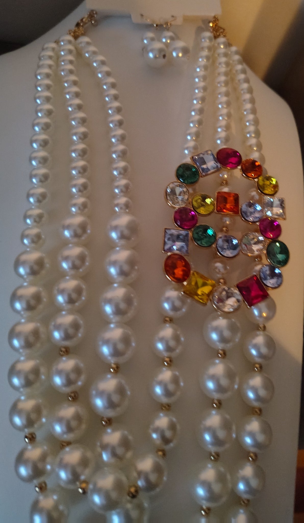 Multicolored Pendant Pearl Necklace & Earing Set