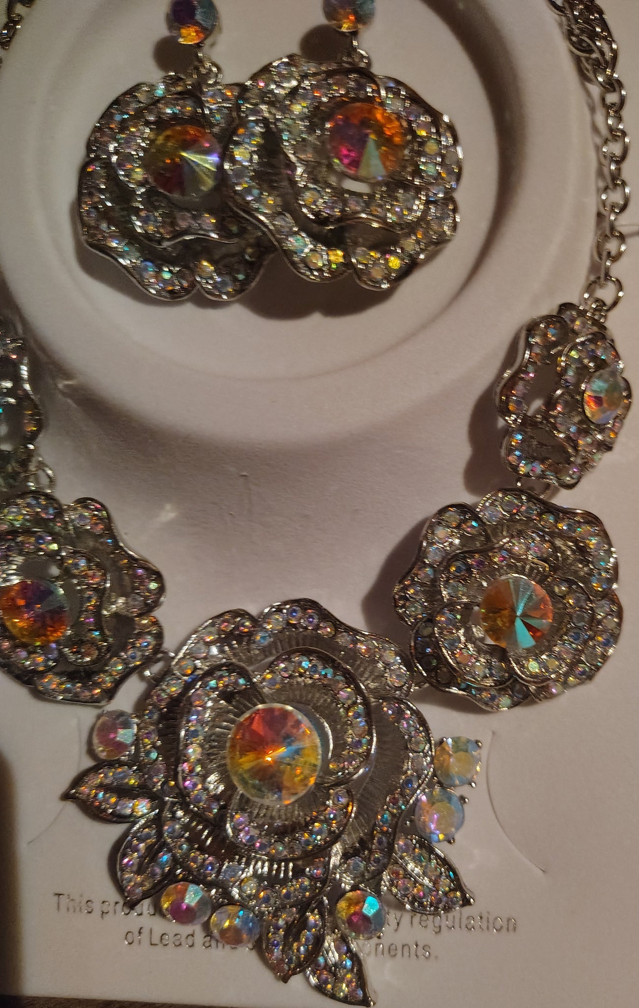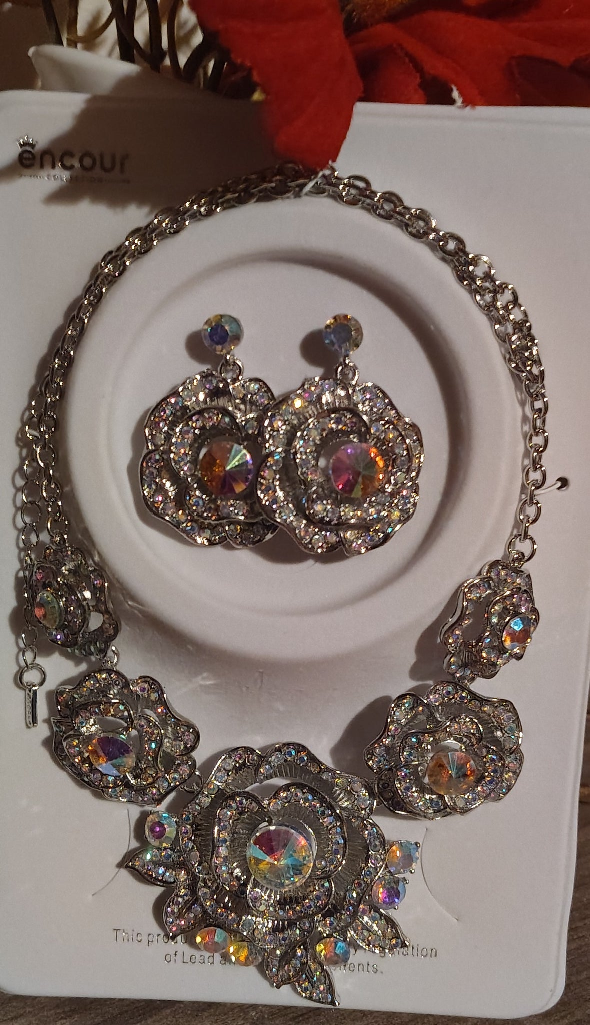 Silver AB Flower Necklace Set