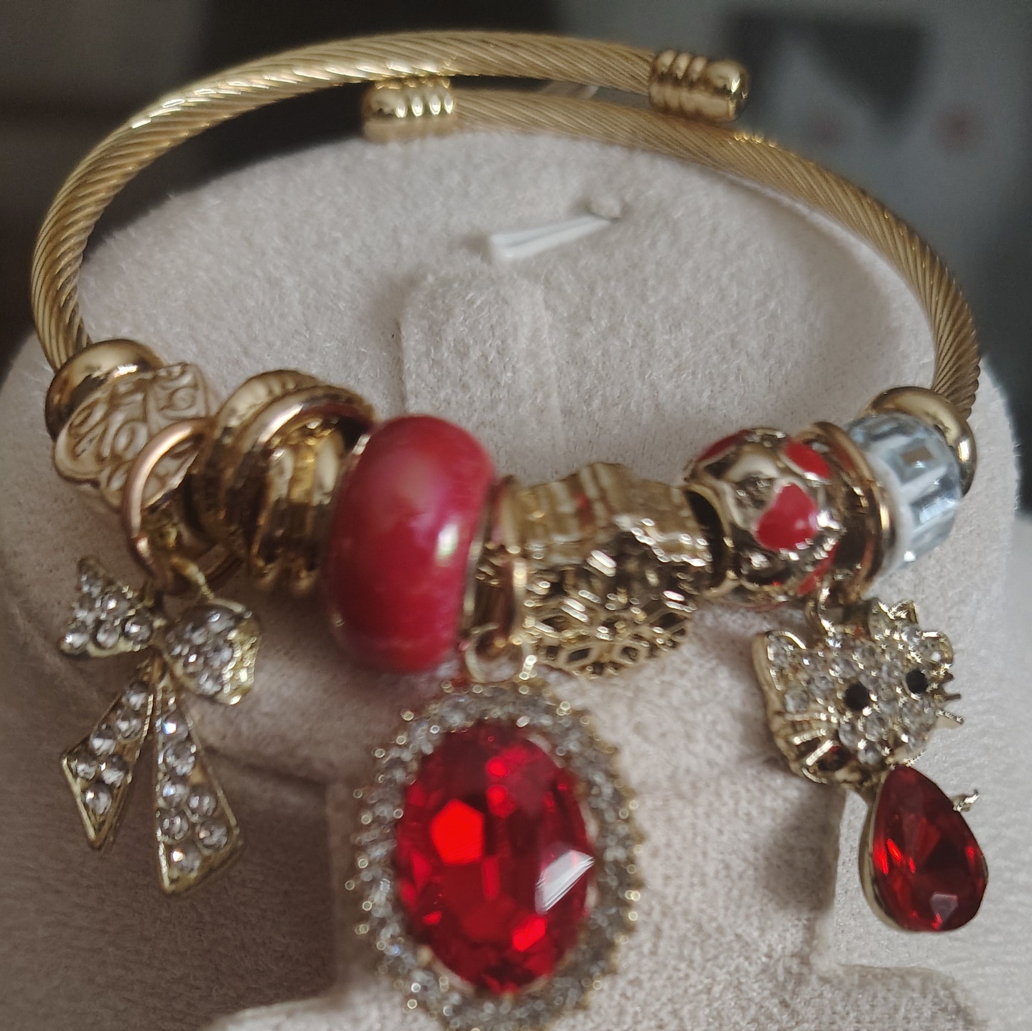 Gold Red Stone Charm Bracelet