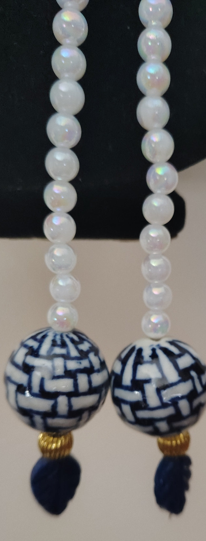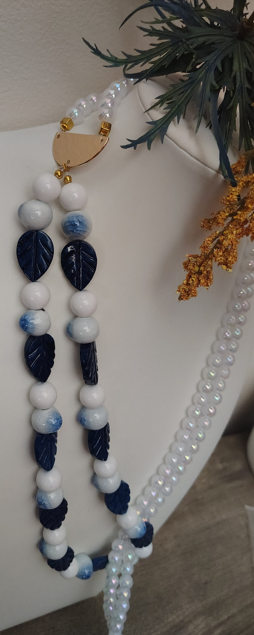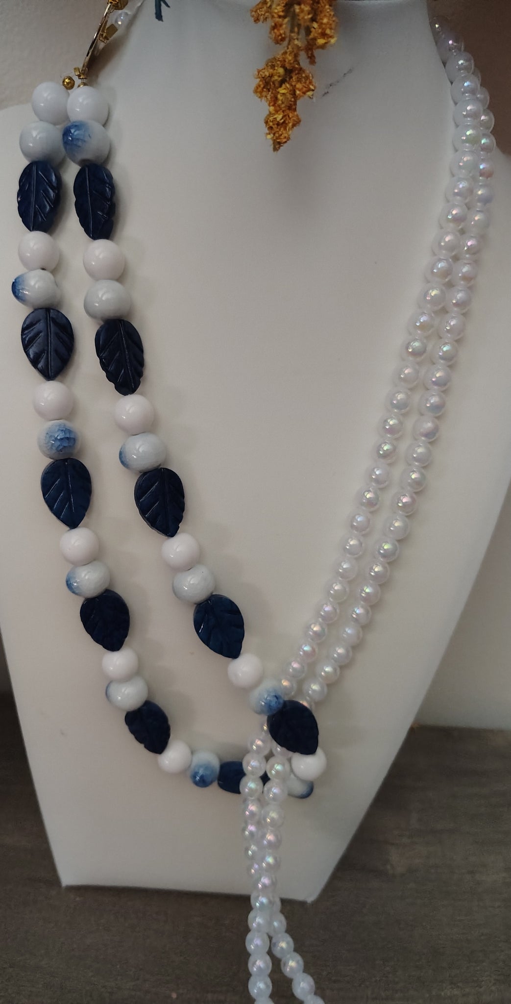 Handmade Lariat Beaded Necklace with Leaf & Mosaic Beads